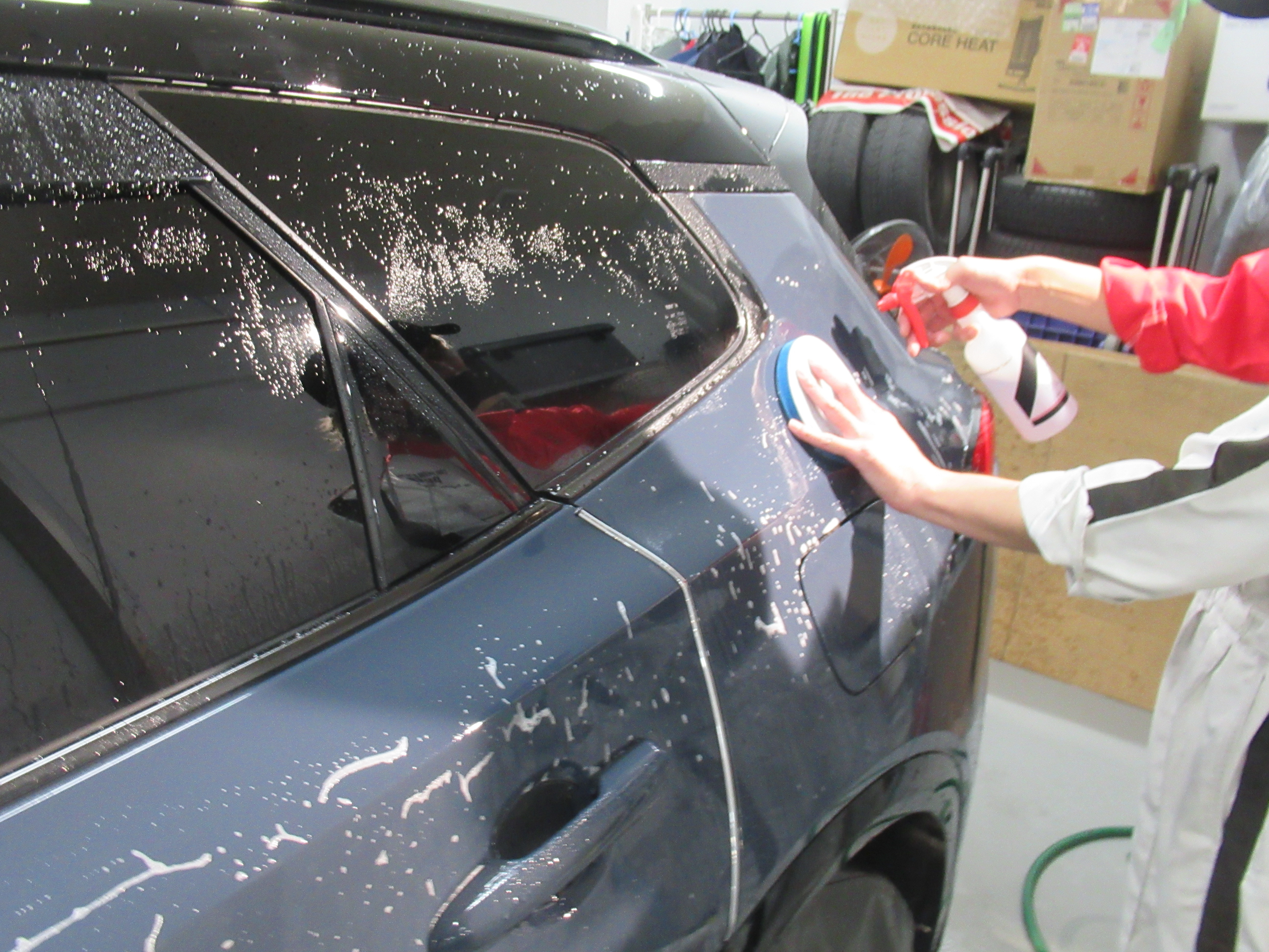磨きから出るコンパウンドの油分を除去するのと、コンパウンドかすは隙間隙間のどこかしらに侵入しているので一緒に洗浄しながら除去します。