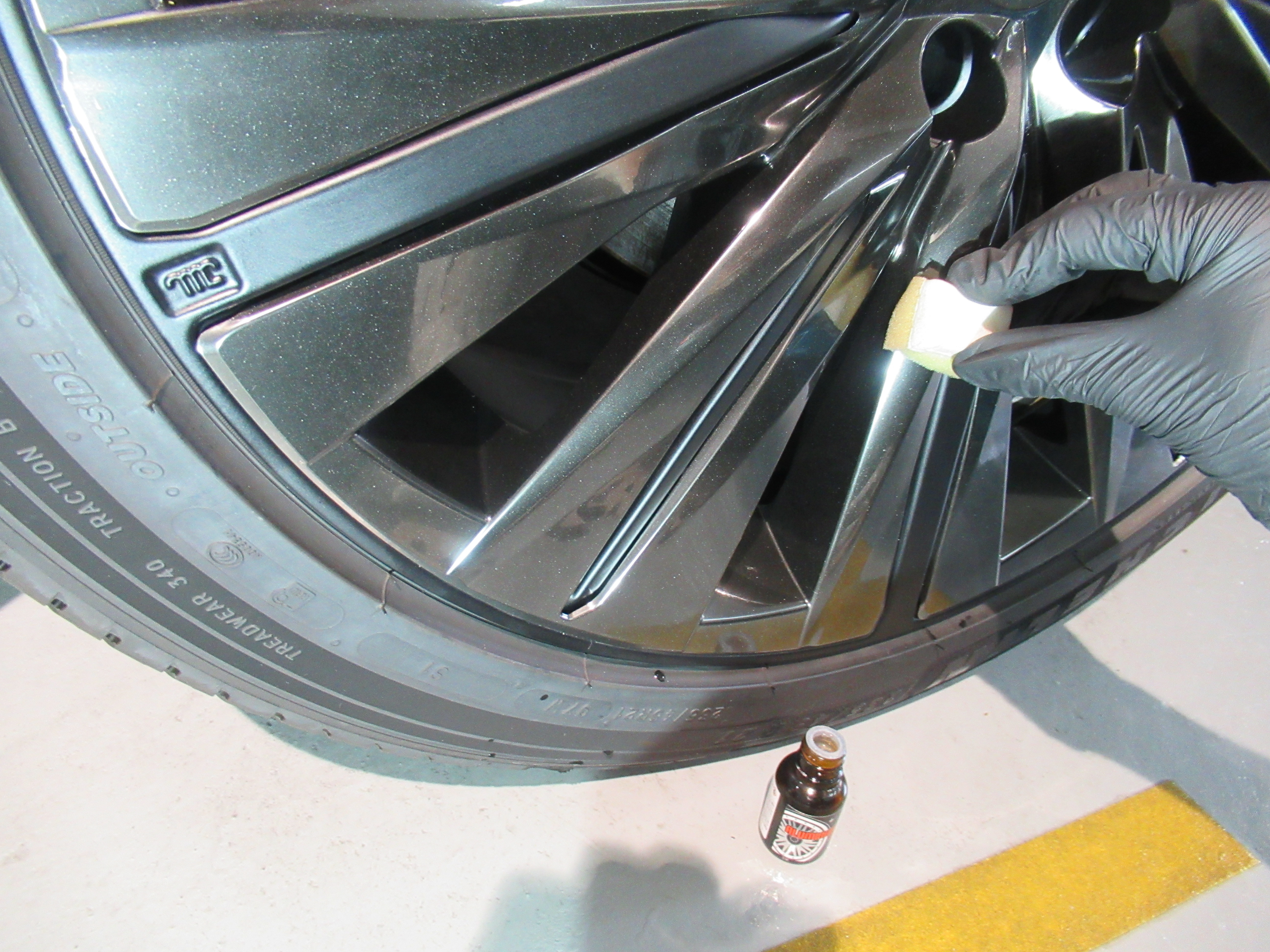 ホイールコーティングします。硬化するので結構美観保てます。撥水力は1年もちませんが。