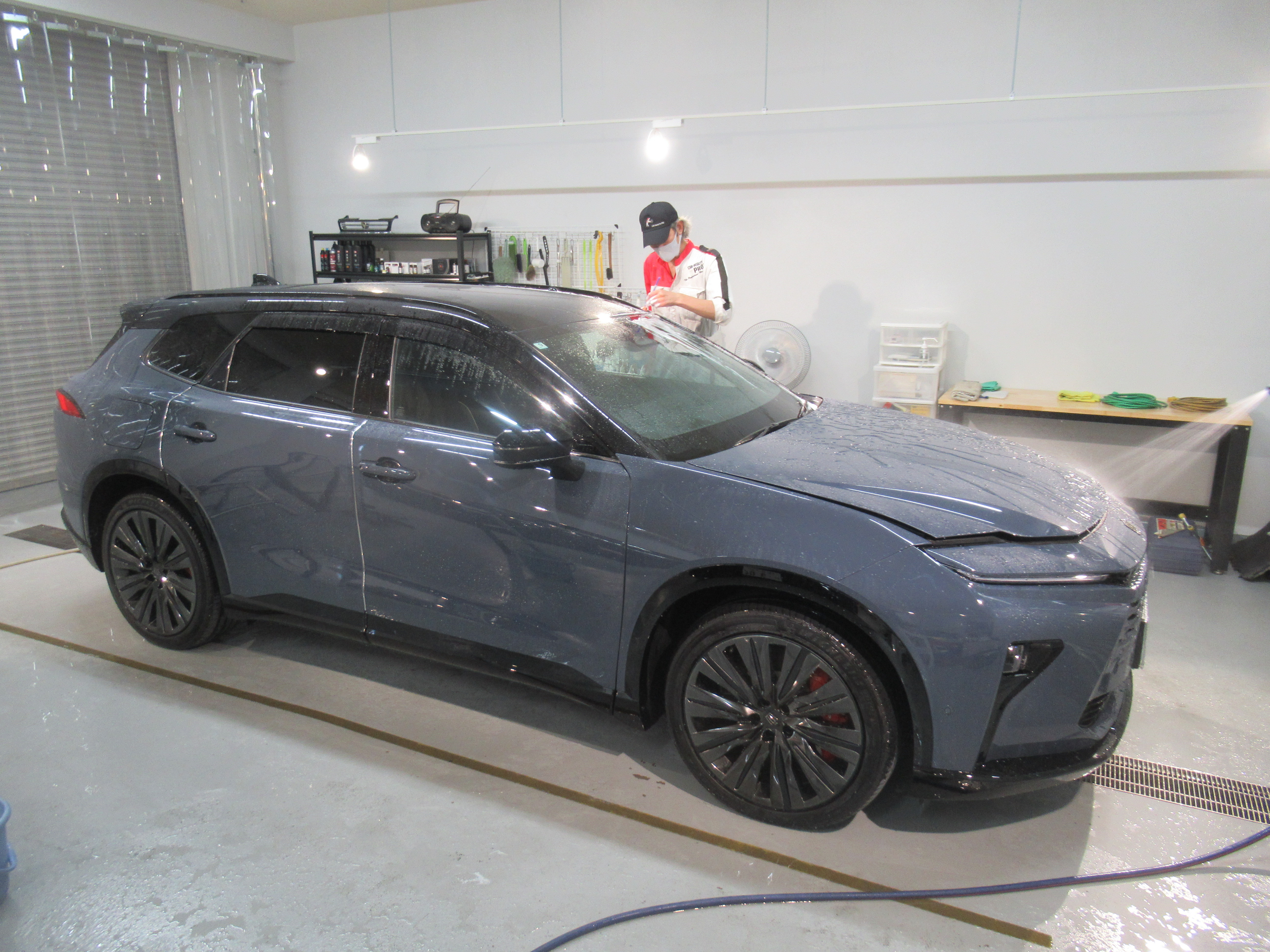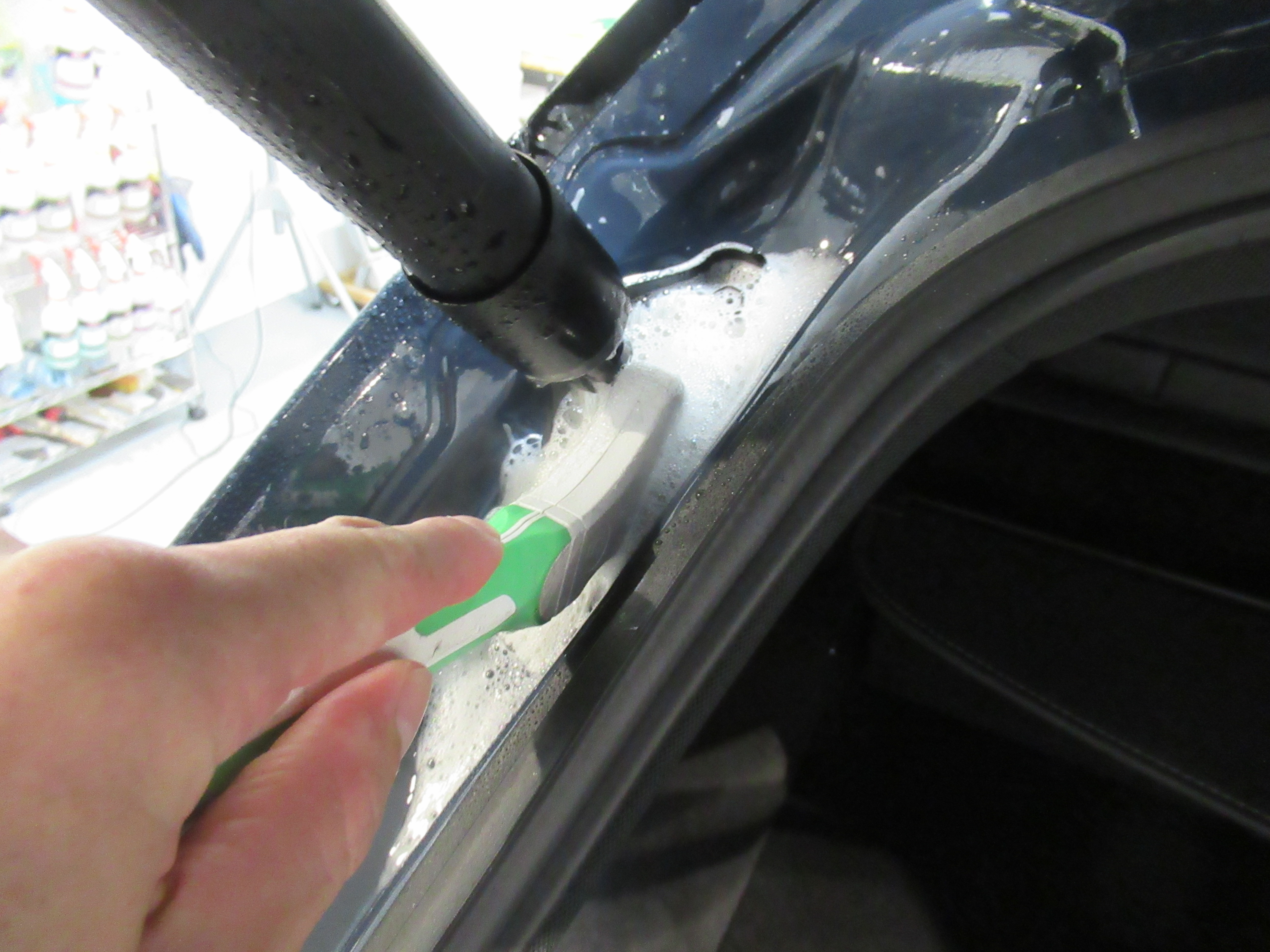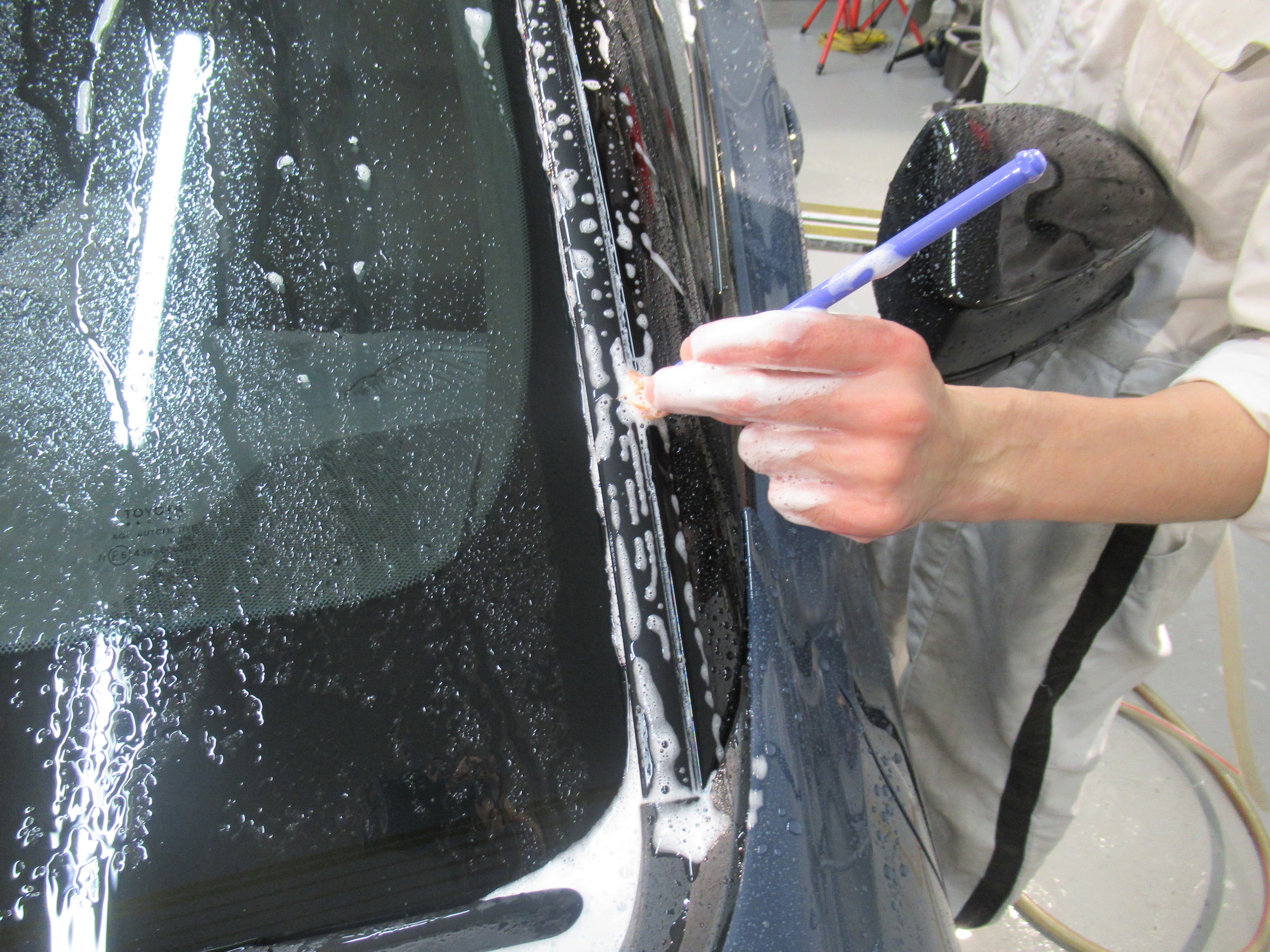 窓ガラス、ボディ細部の洗浄。鉄粉も除去します。