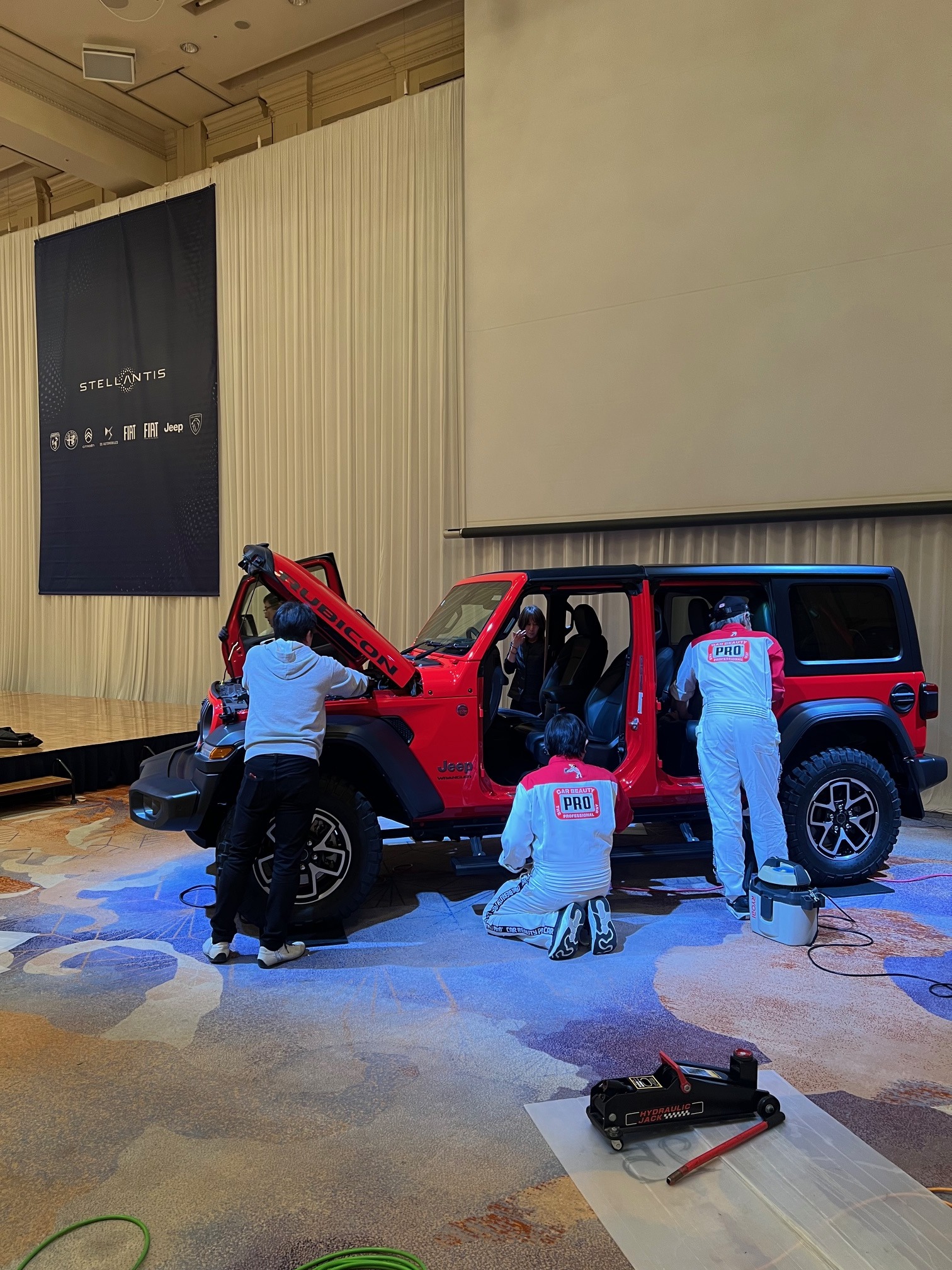 先週ですが、昼間作業して、深夜に都内某ホテルで「ステランティスジャパン」の展示車両施工にいってきました。限られた時間で2台。走行車の広報車両なので拭き傷汚れもそこそこ。