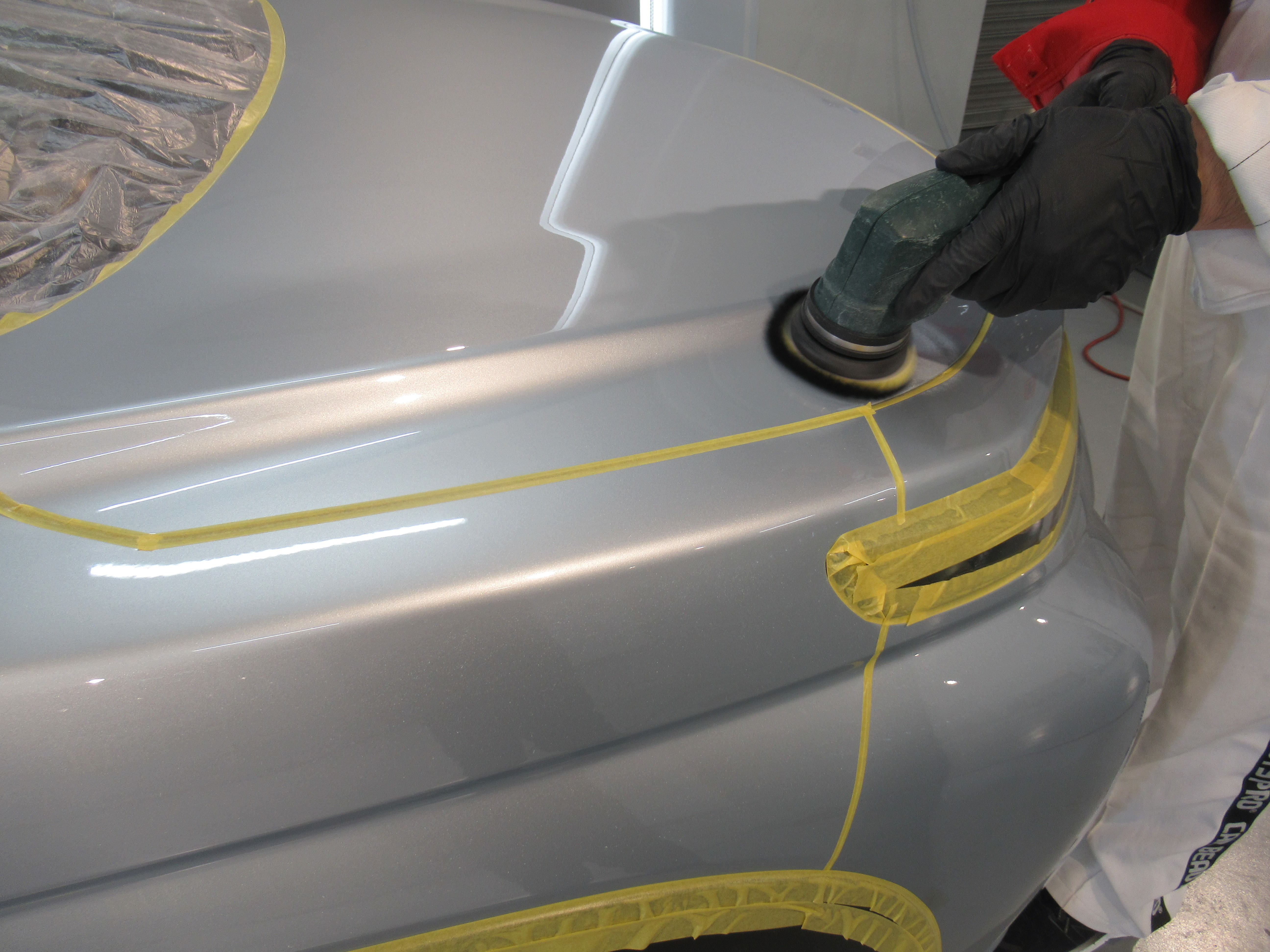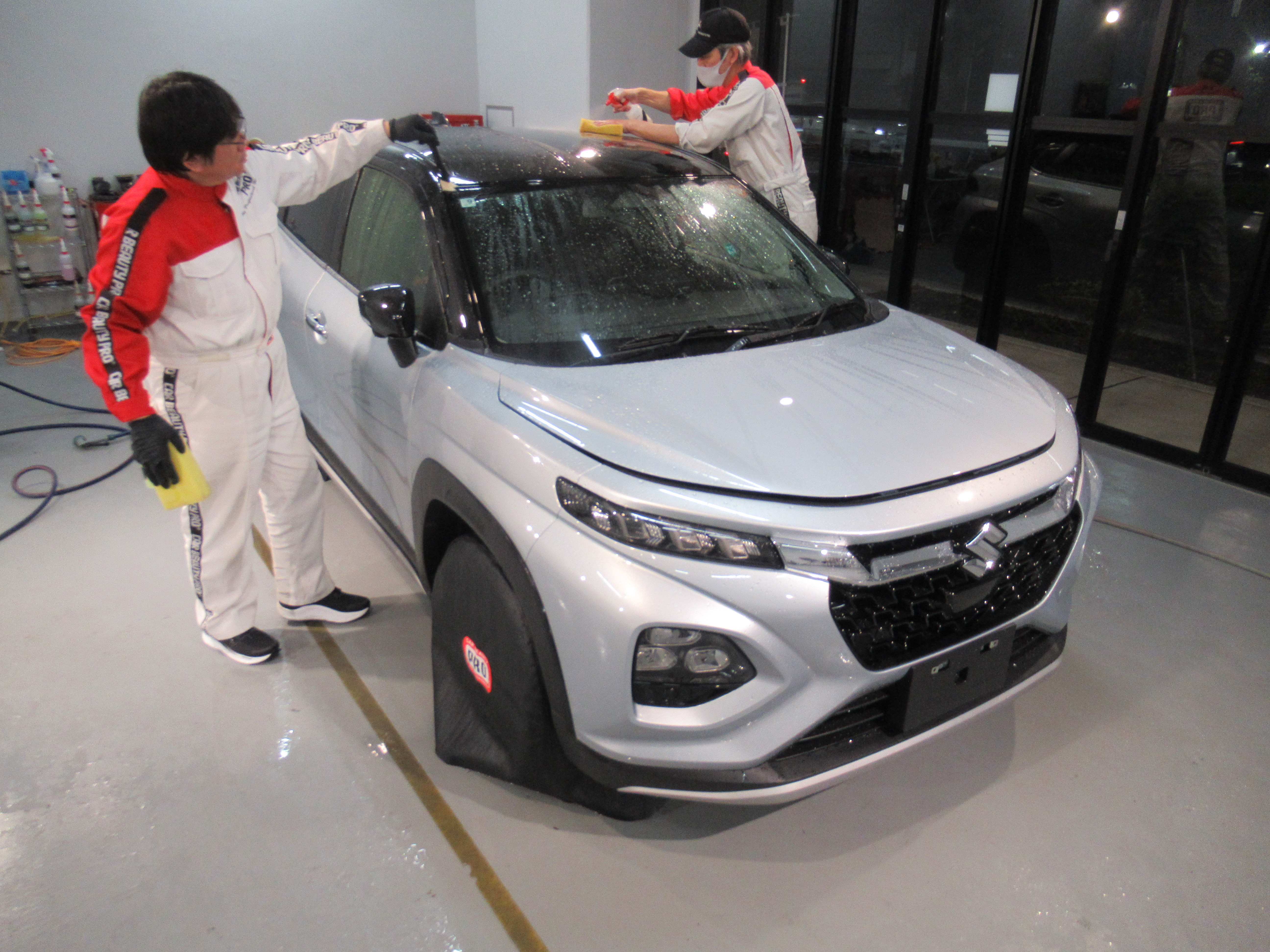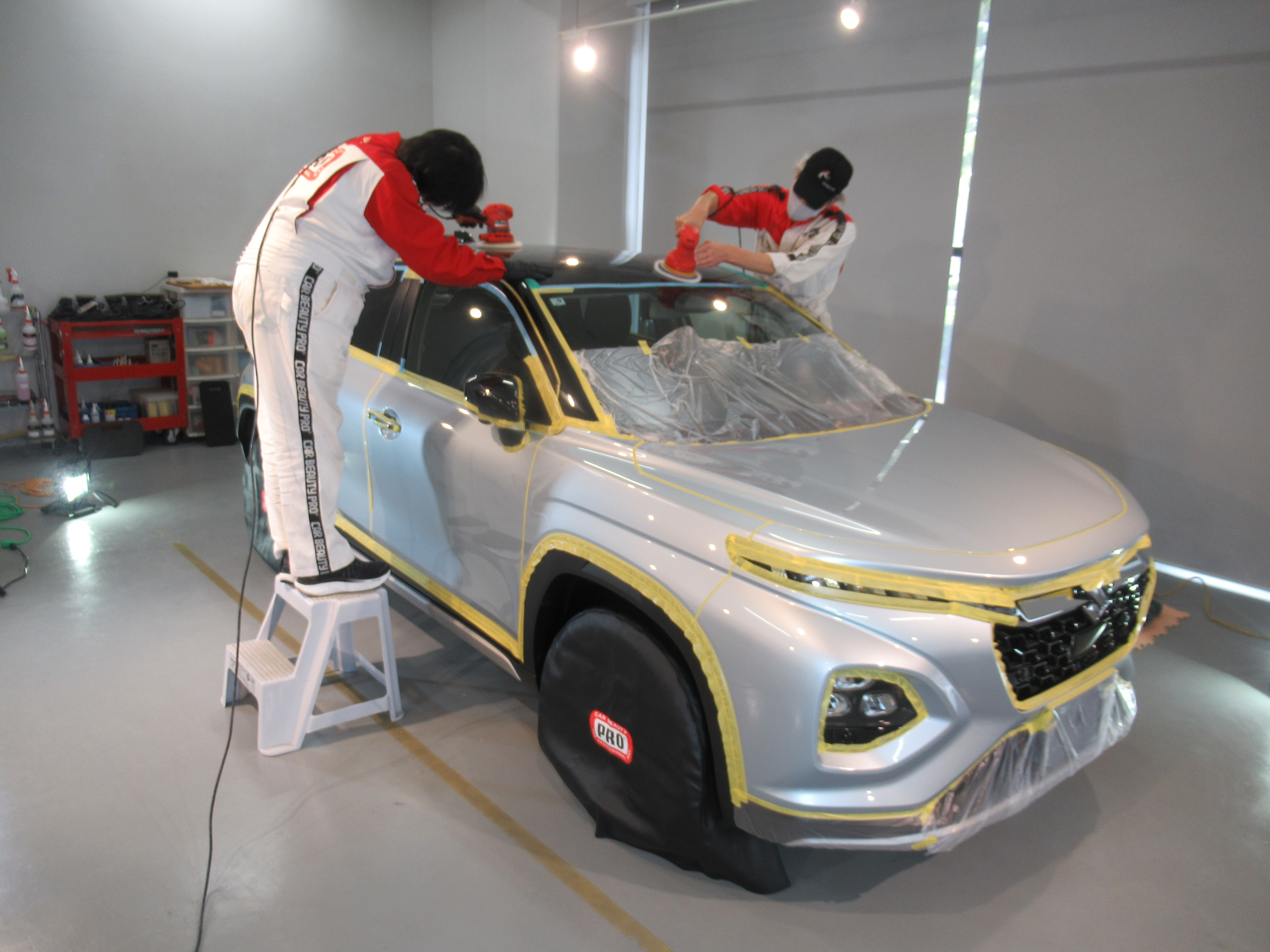 新車ですがクリア塗装を磨いて塗装面調整を行います。