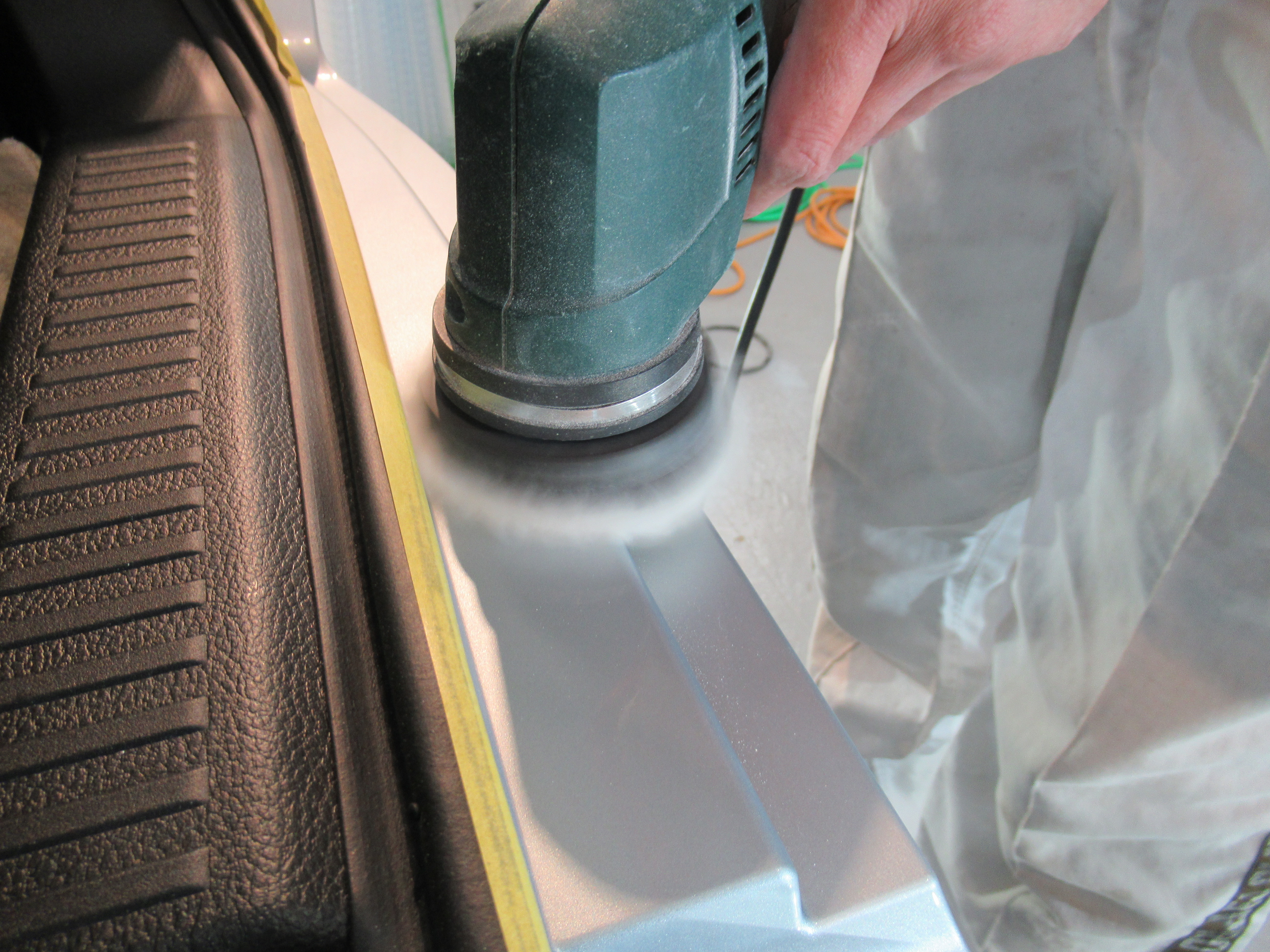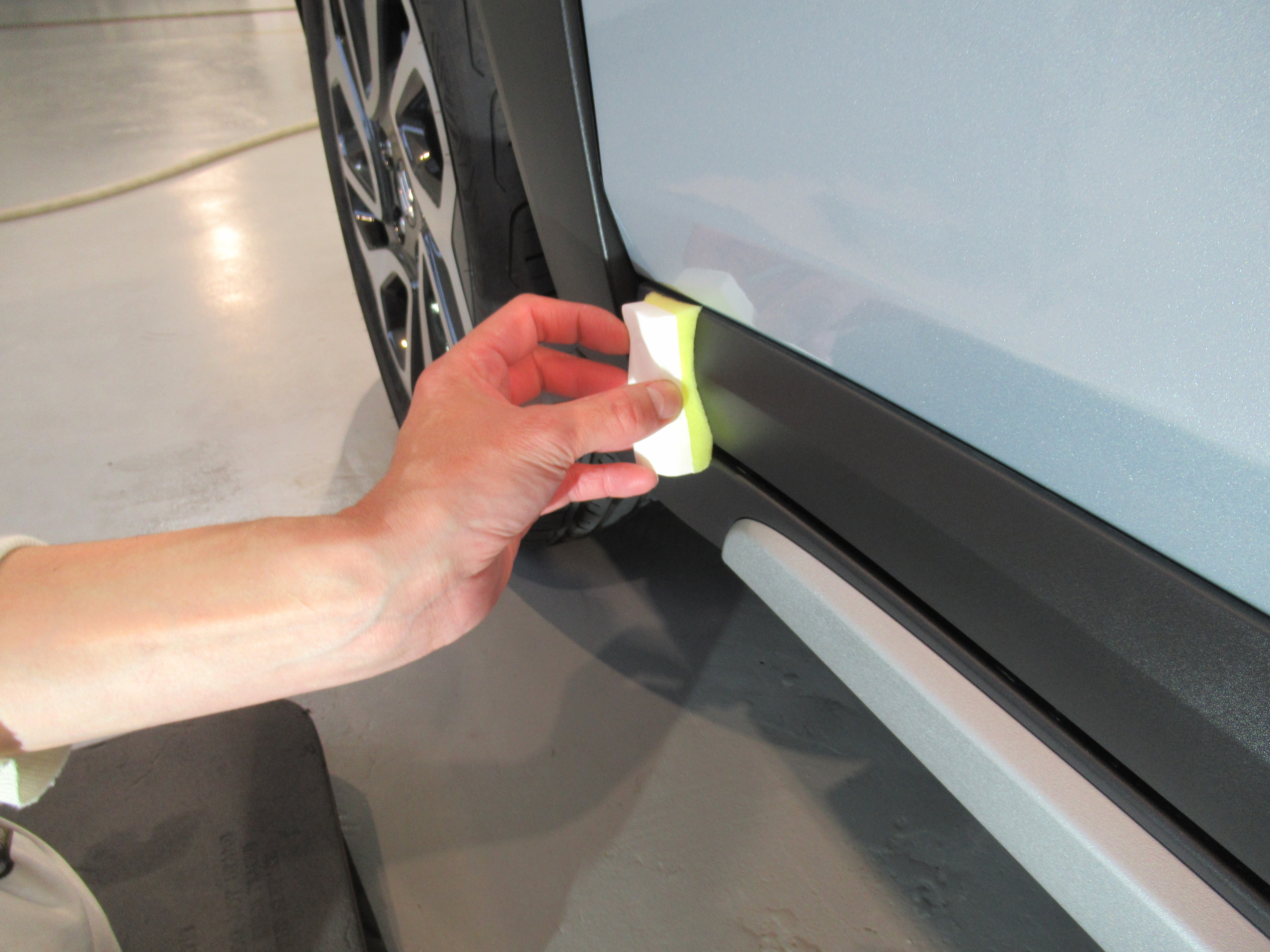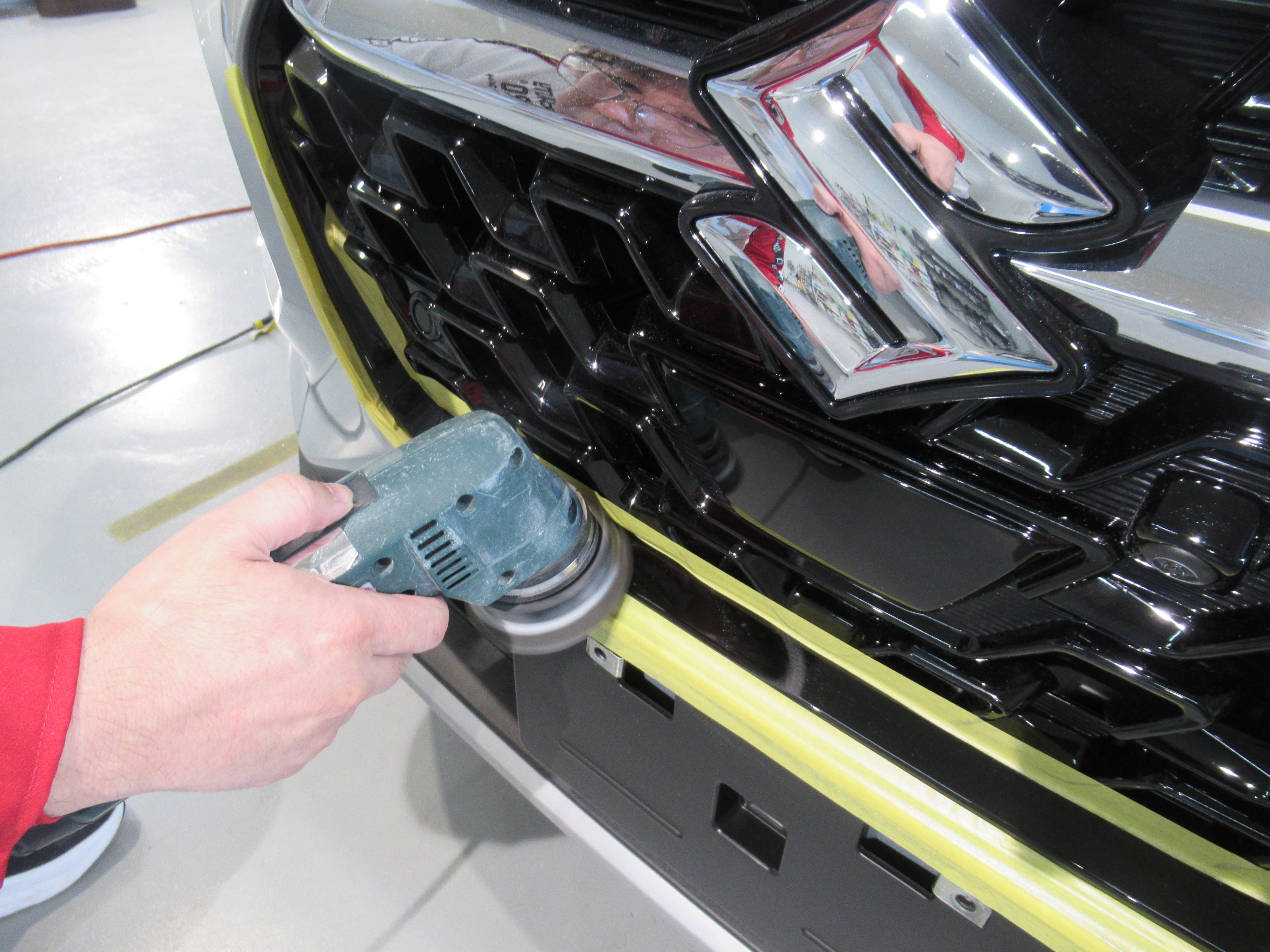 新車ですがクリア塗装を磨いて塗装面調整を行います。