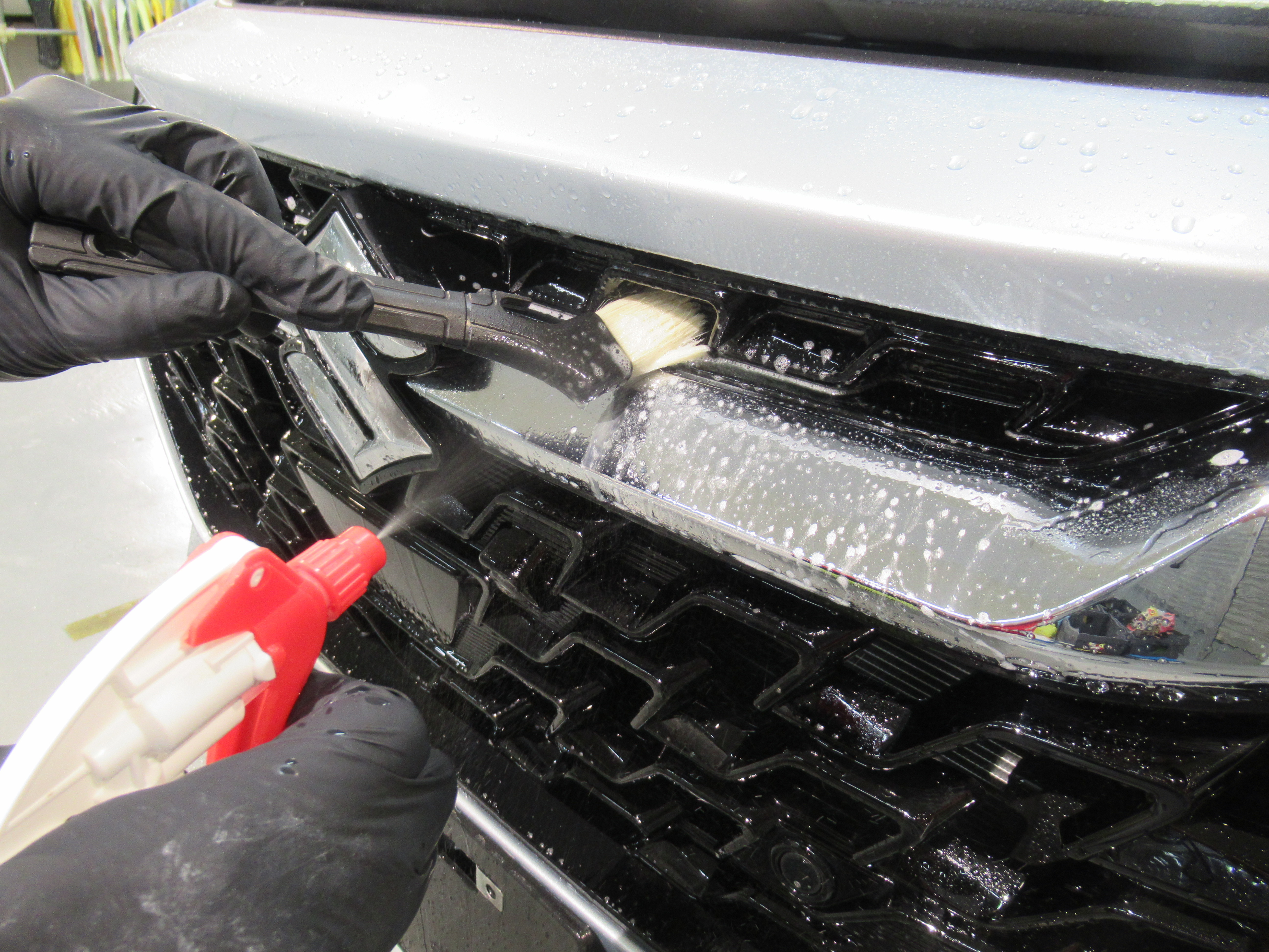 磨きから出るコンパウンドの油分を除去するのと、コンパウンドかすは隙間隙間のどこかしらに侵入しているので一緒に洗浄しながら除去します。