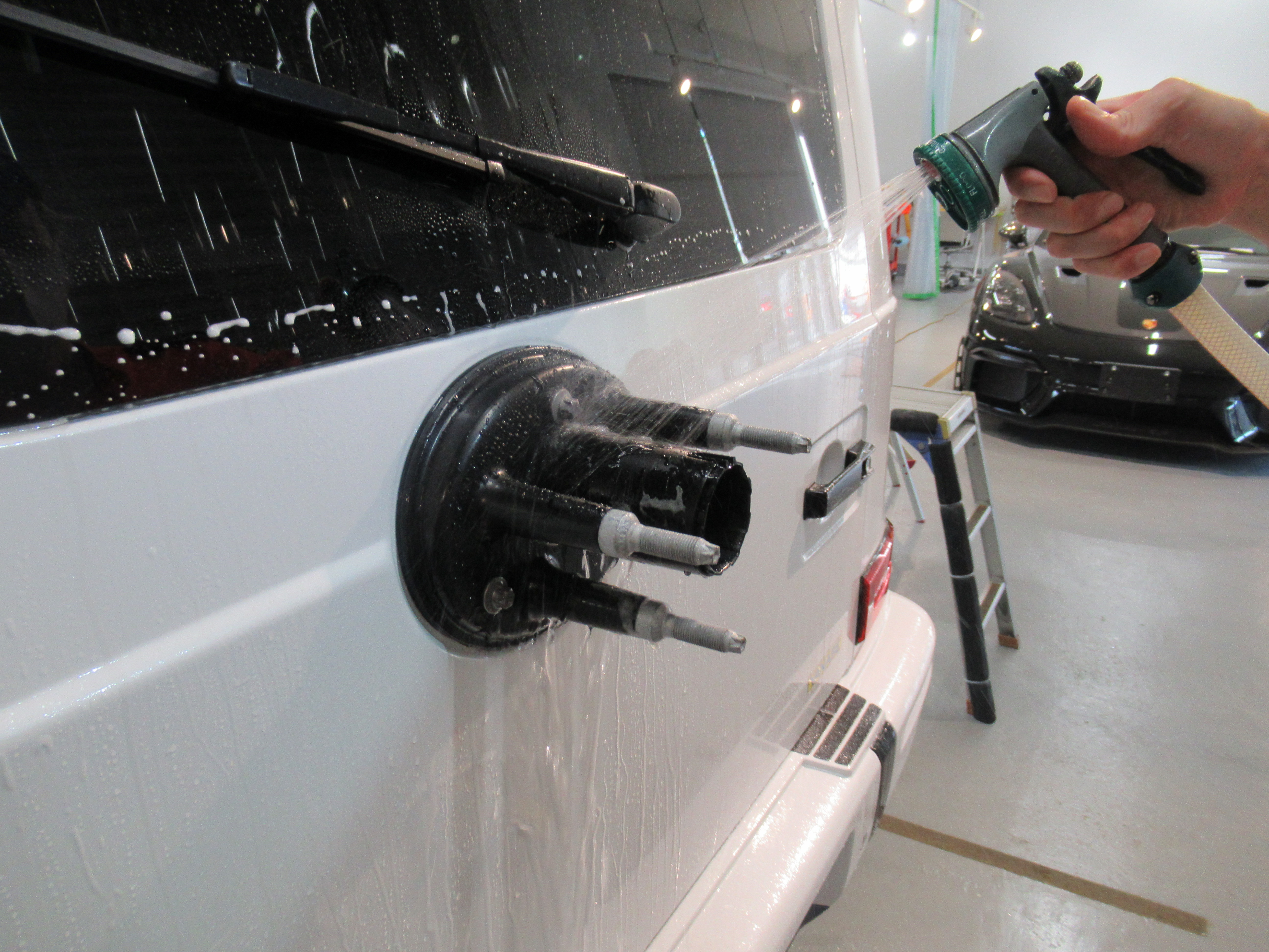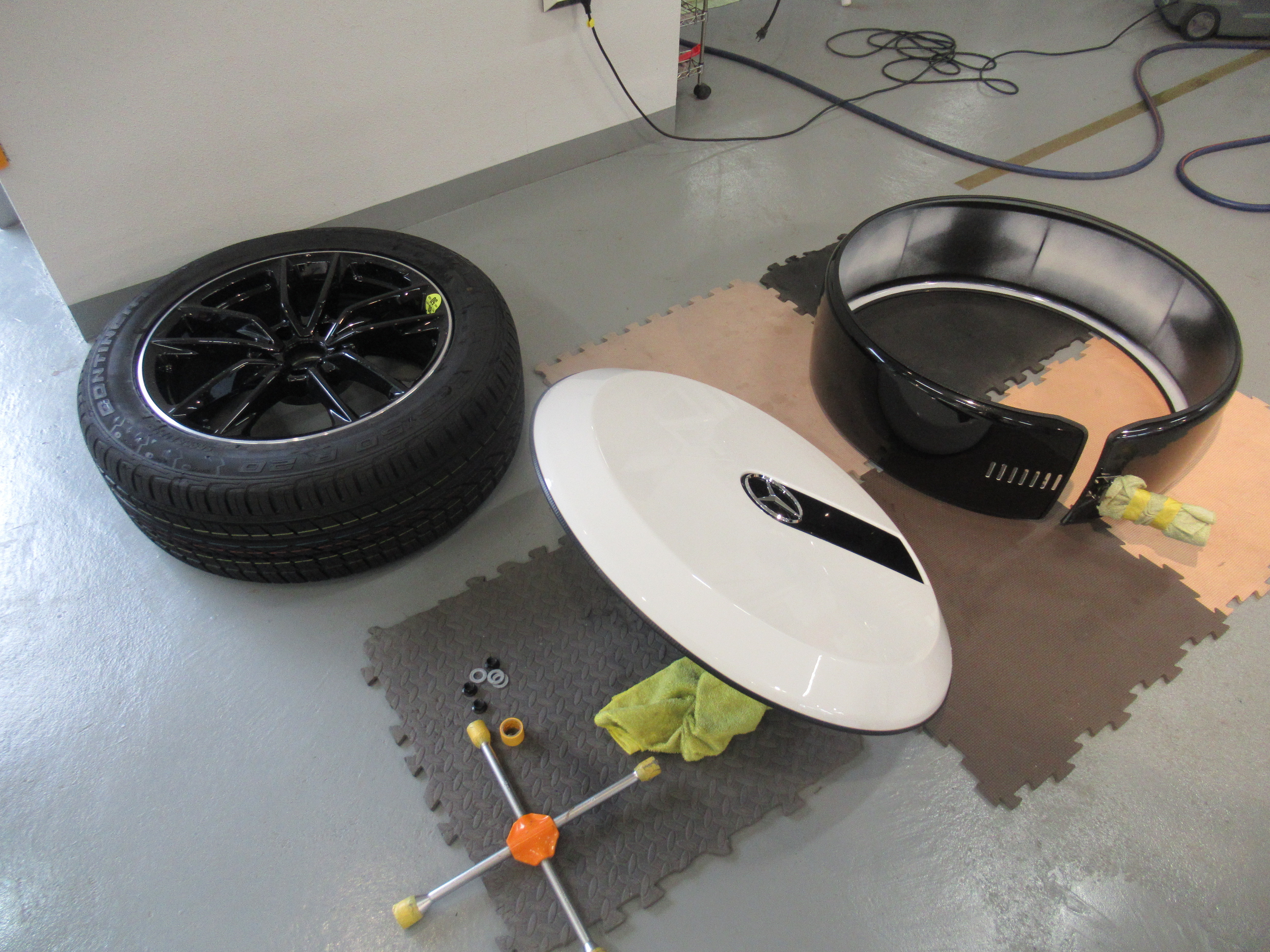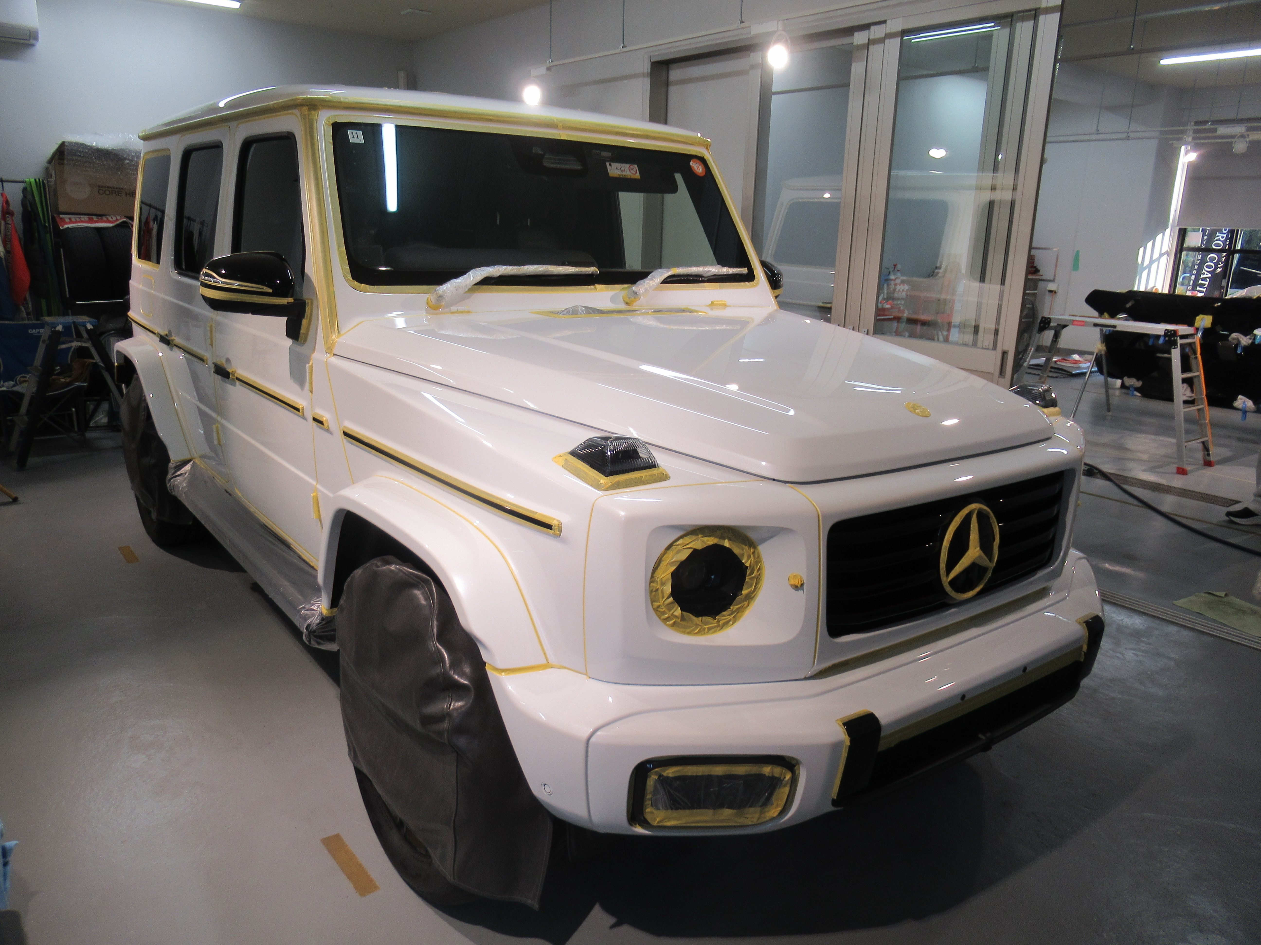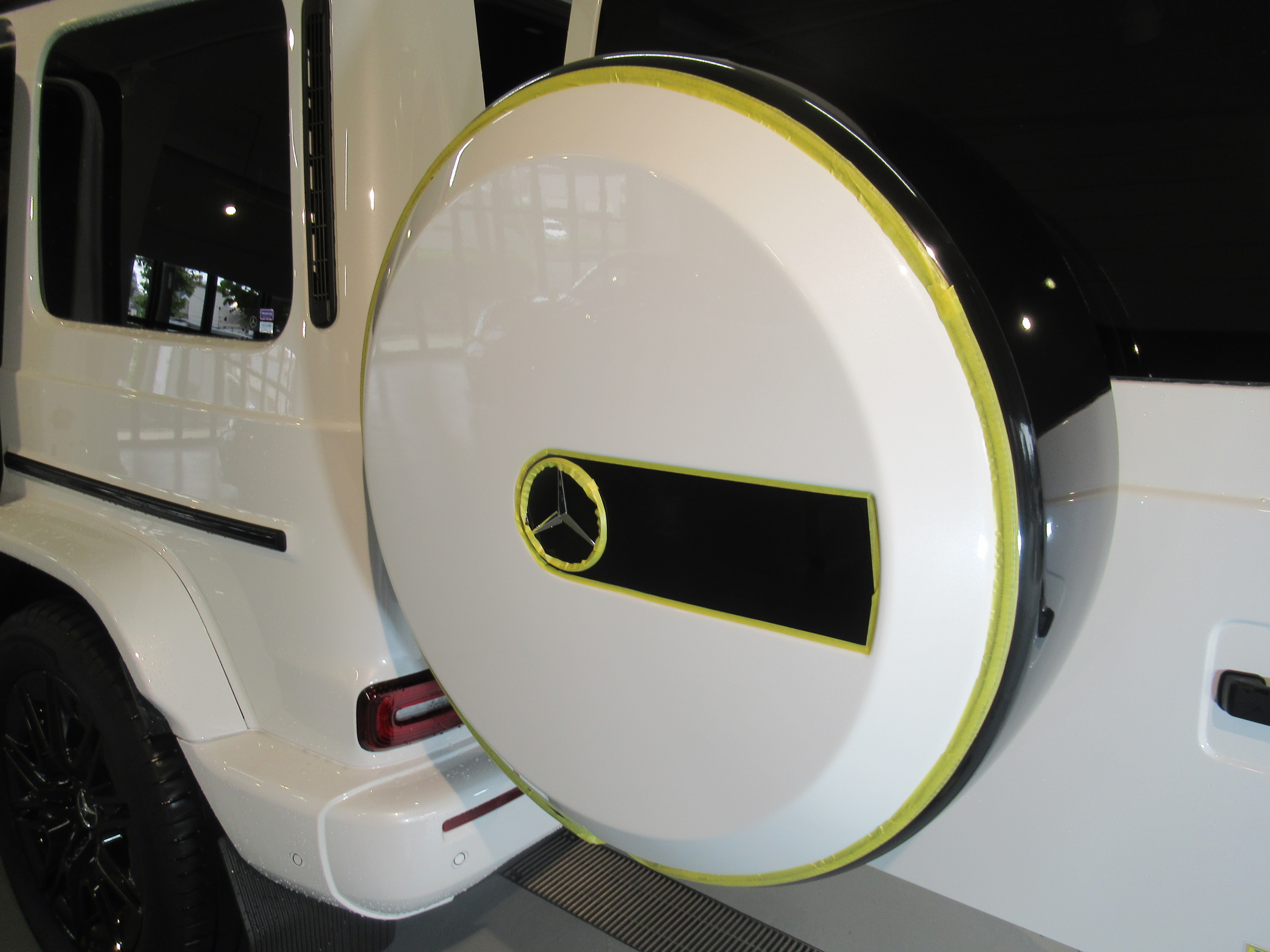 まずは、リアのスペアタイヤを外すので洗浄してマスキング(養生)