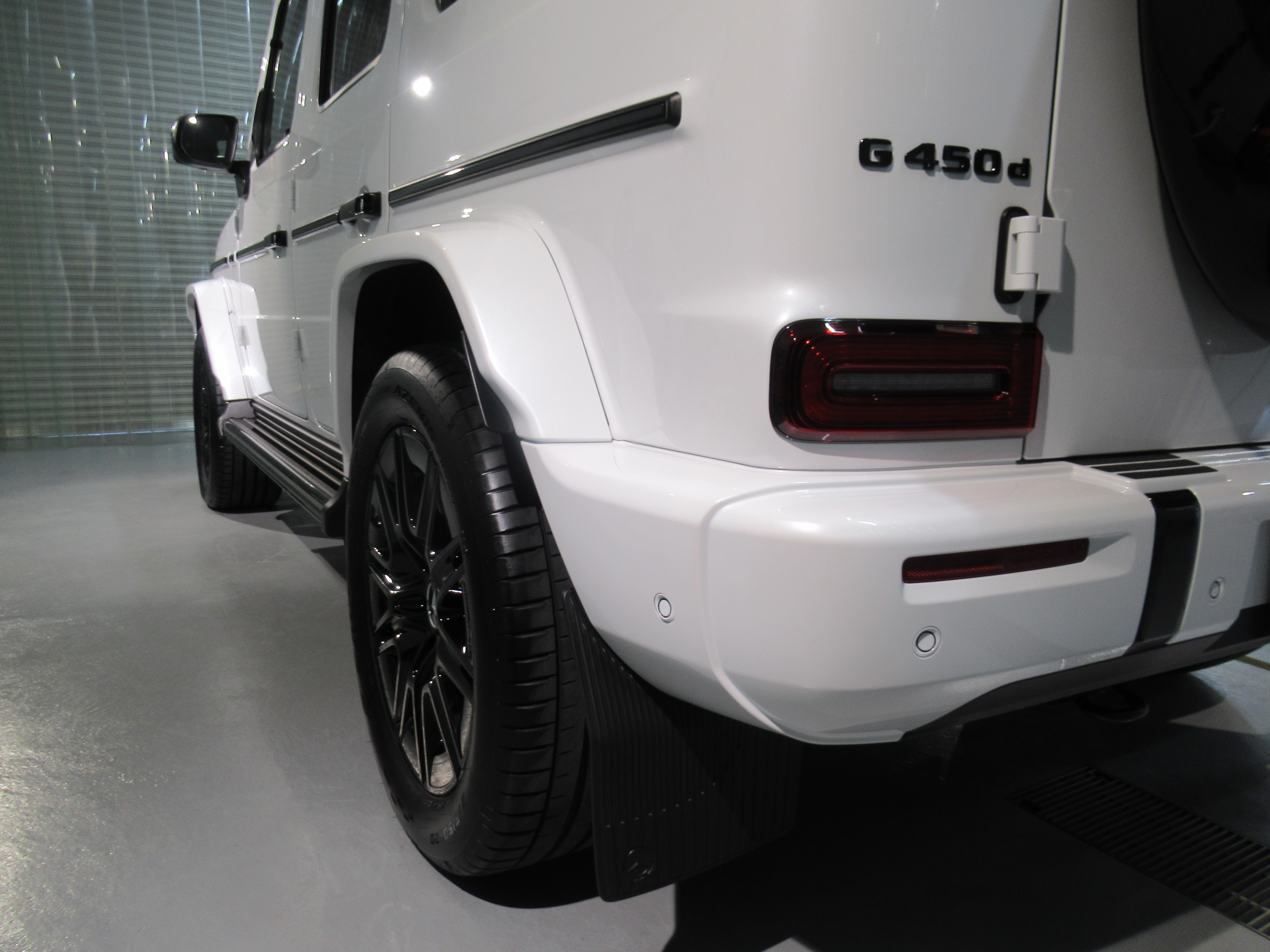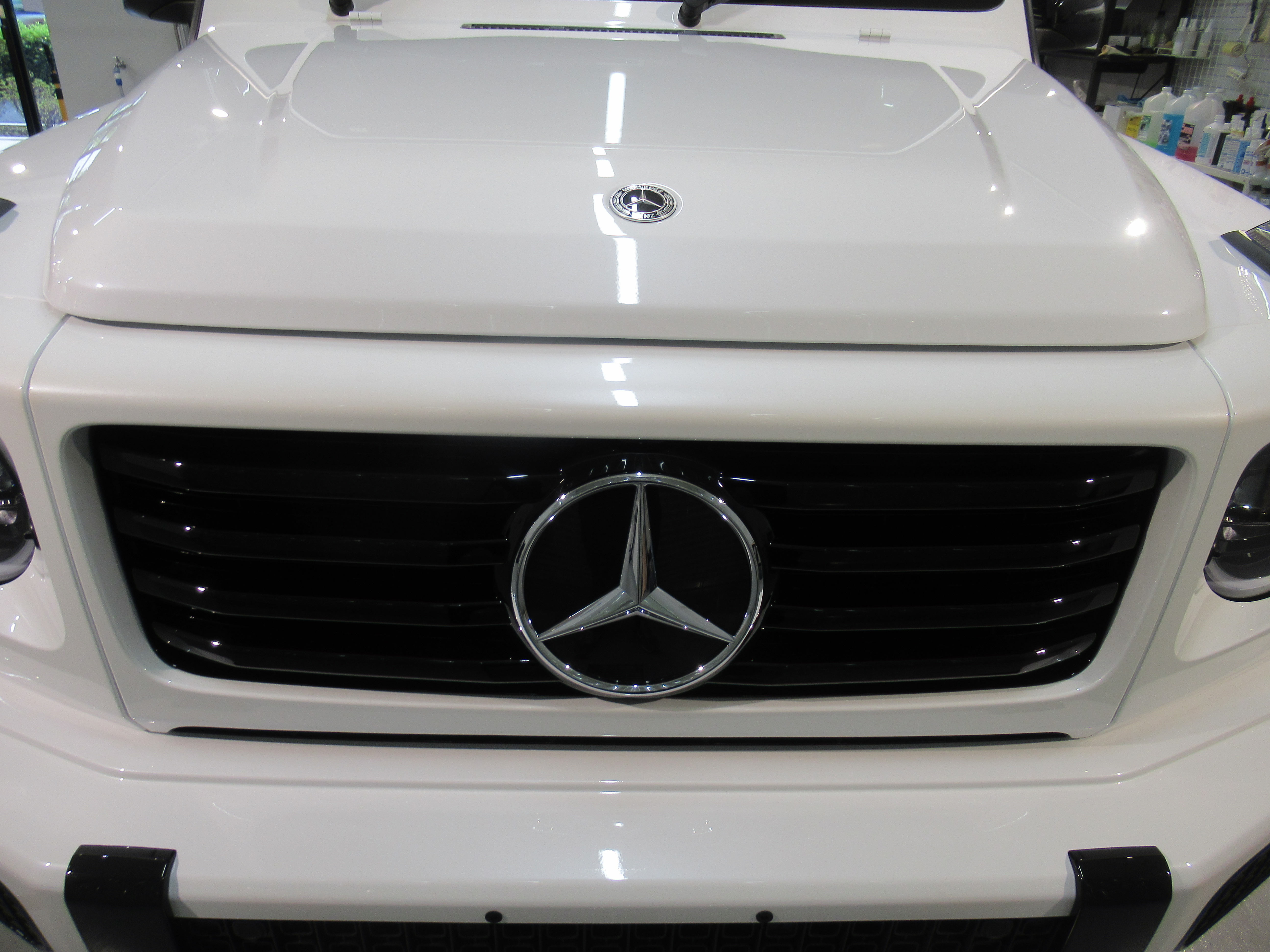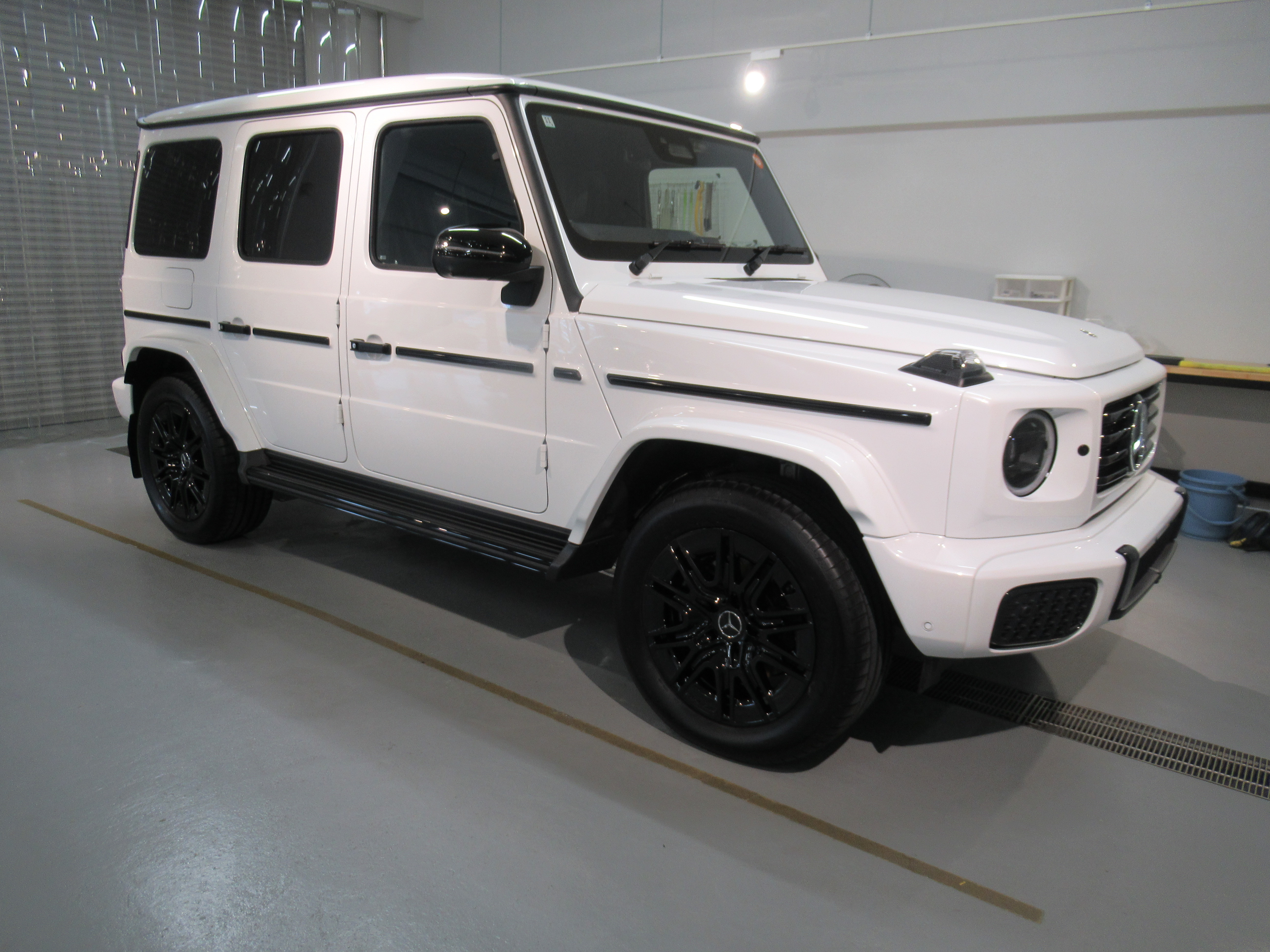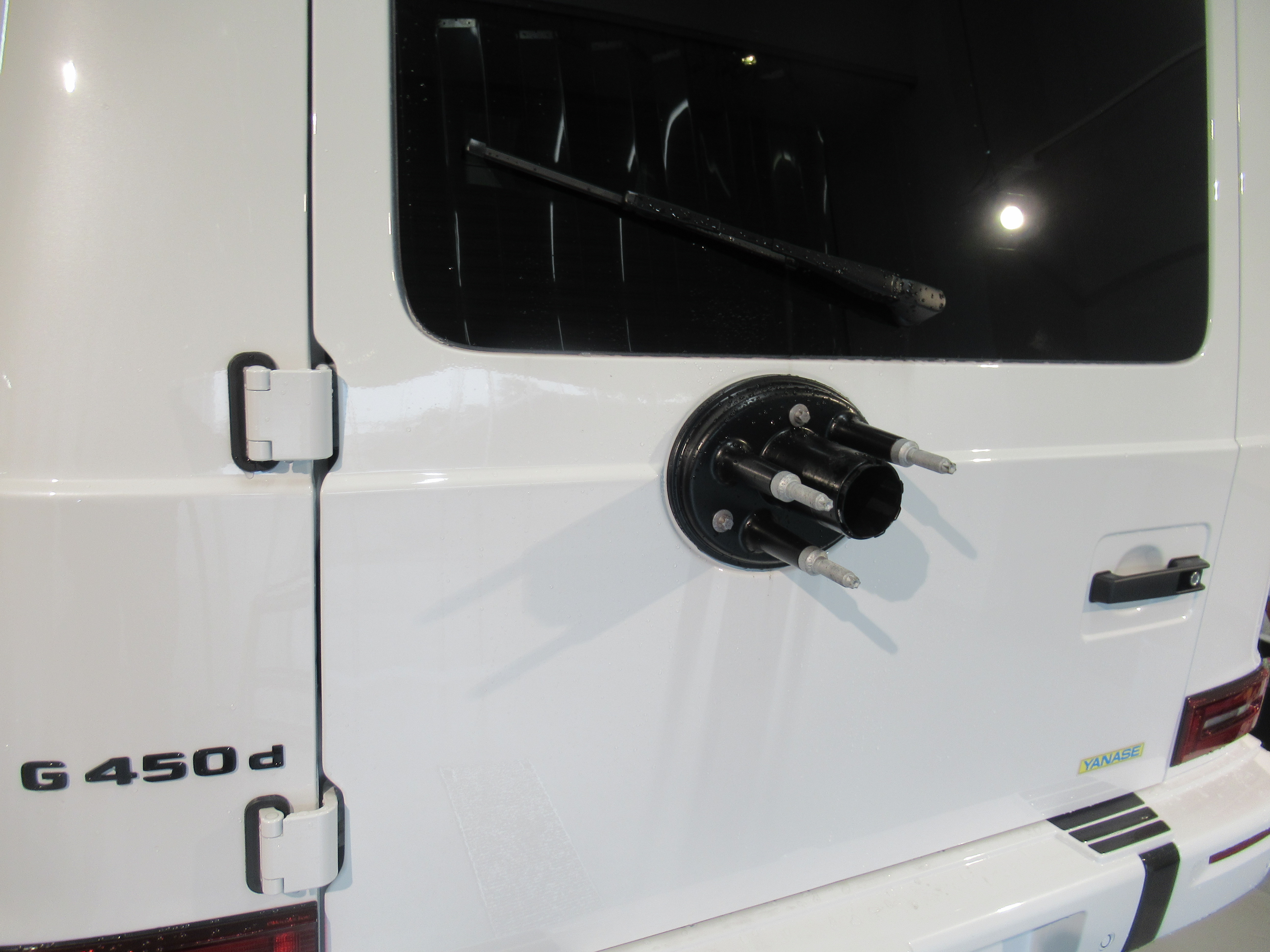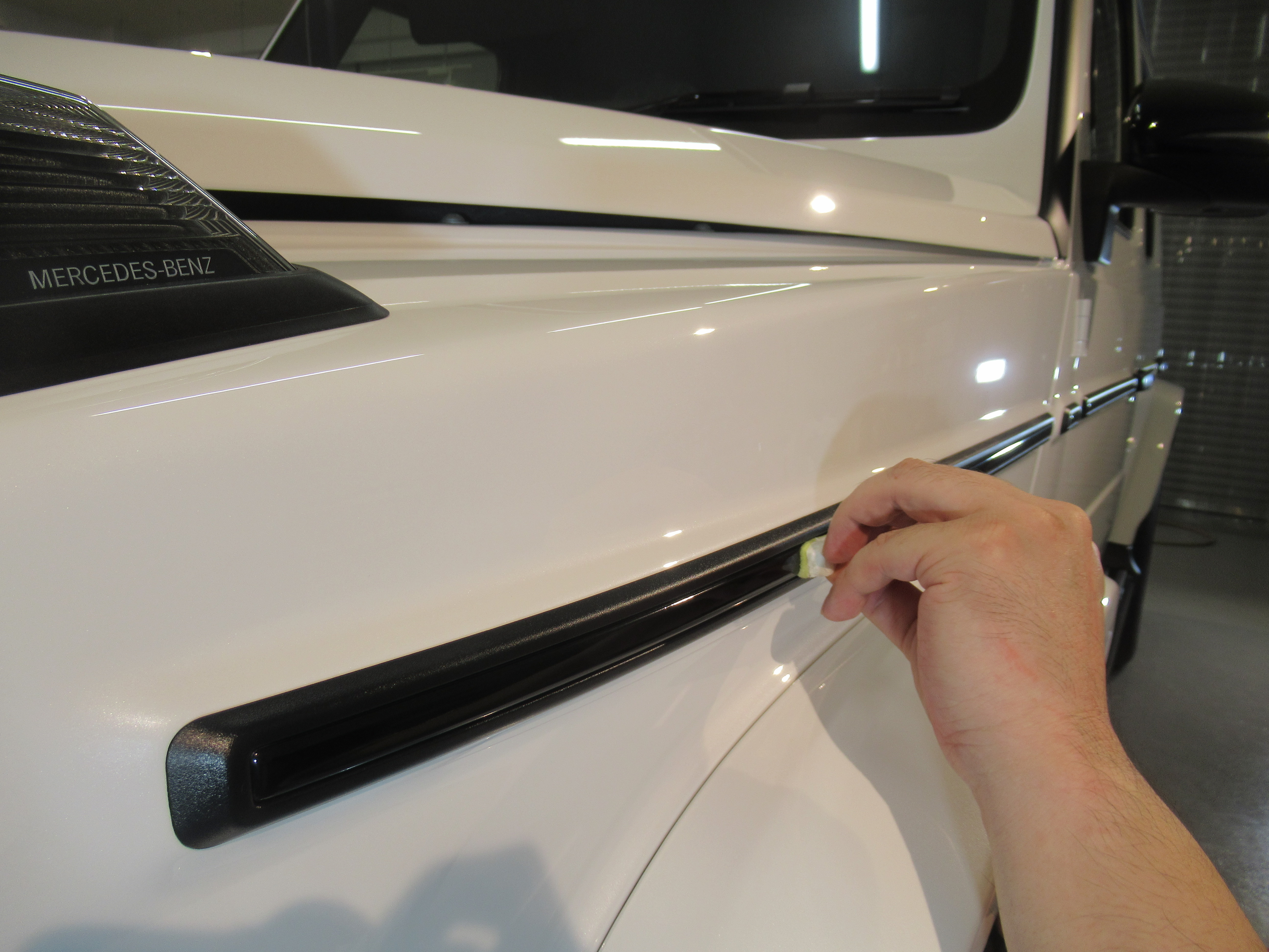 サイド樹脂パーツの中や、ステップ部分、リアスペアタイヤ部分のパーツには特殊素材で加工された部品が取り付けられていたので、違うコーティング剤で対応させていただきました。(撥水ガラスコーティング)