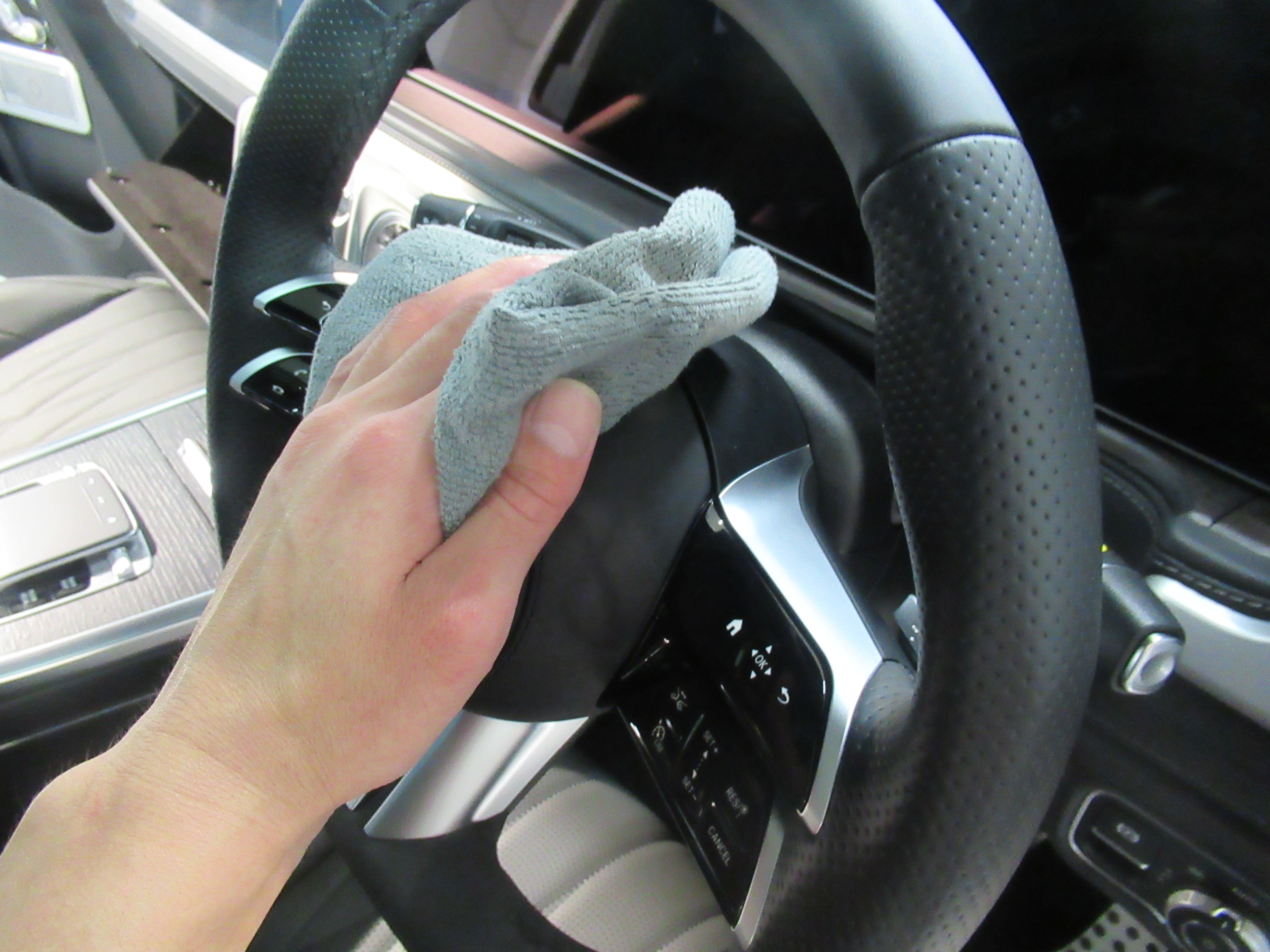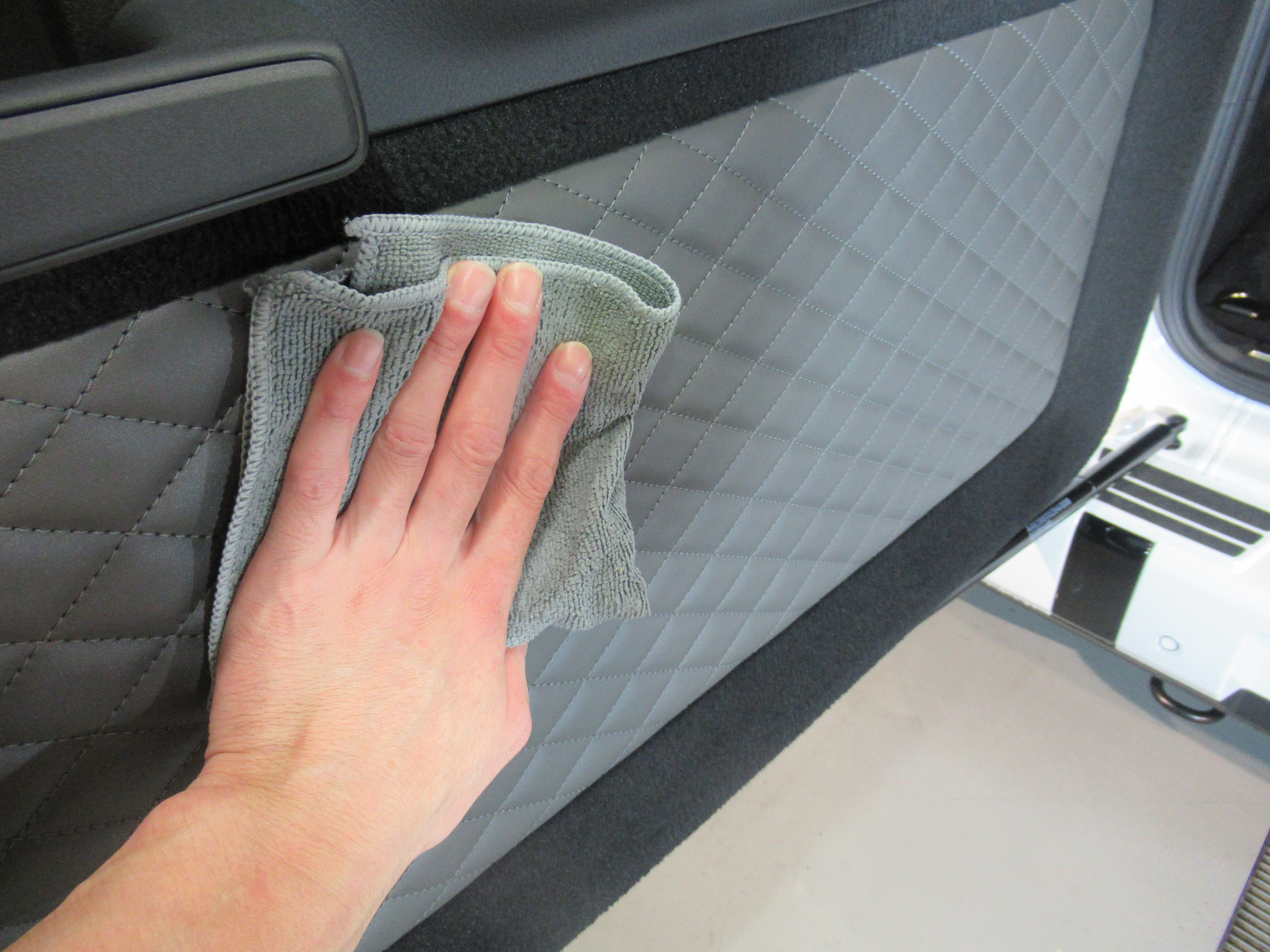 室内をコーティングすることで美観はもちろんのこと、除菌効果を持続、パーツ革シートの劣化を防ぎます。