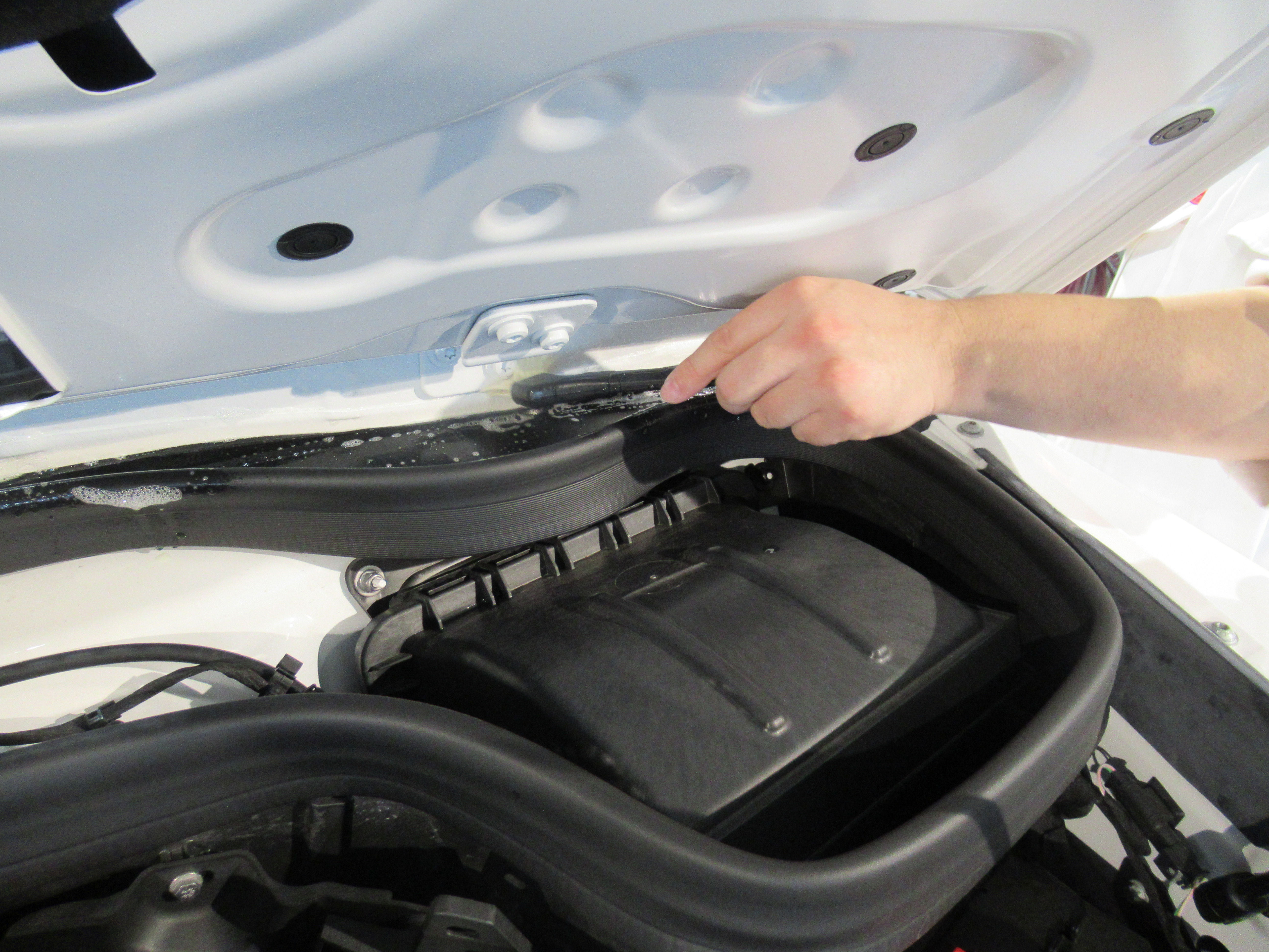ボンネット磨いたら開けて、隅をみがきます。